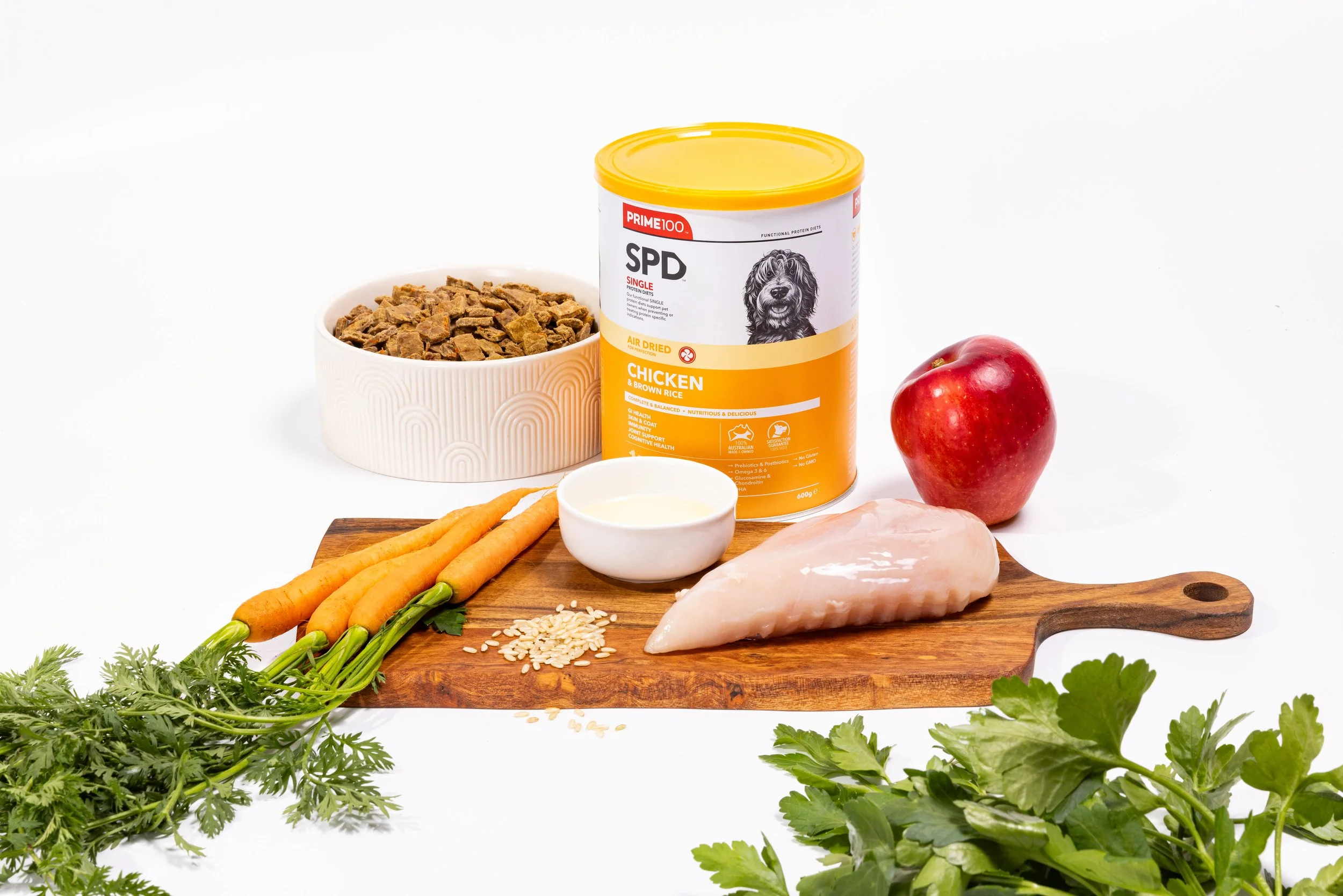PRIME100 uses a Single Protein Diet (SPD), meaning each recipe contains just one animal protein source. This helps support dogs with food sensitivities, allergies, or digestive issues, while also making it easier to identify any dietary triggers.